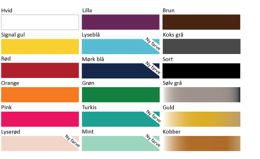 I øjeblikket har jeg disse farver folie på lager: